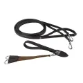 ramantygel med elastik. Används tillsammans med en vanlig tygel. Kommer med dubbla hakar och ett sadelgjordsfäste för att kunna variera infästning. Fästes i sadelgjorden antingen mellan hästens framben eller på sidorna, precis nedanför sadelkåpornaoch löper genom bettringarna till ryttarens hand. Rengör gärna efter användning för ökad livslängd på lädret.