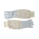 Bihandske i mjukt och bekvämt äkta fårskinn i gult med lång ärm i naturfärgat tjockare bomull/canvas med nätventilation. Går högt på ärmen för ökat skydd vid arbete med bina. Med resårförsedd mudd som håller handsken på plats.Handske i gult fårskinn med hög mudd. Mitt på mudden finns nätventilation. Skyddar mot bistick vid arbete i bigården.