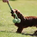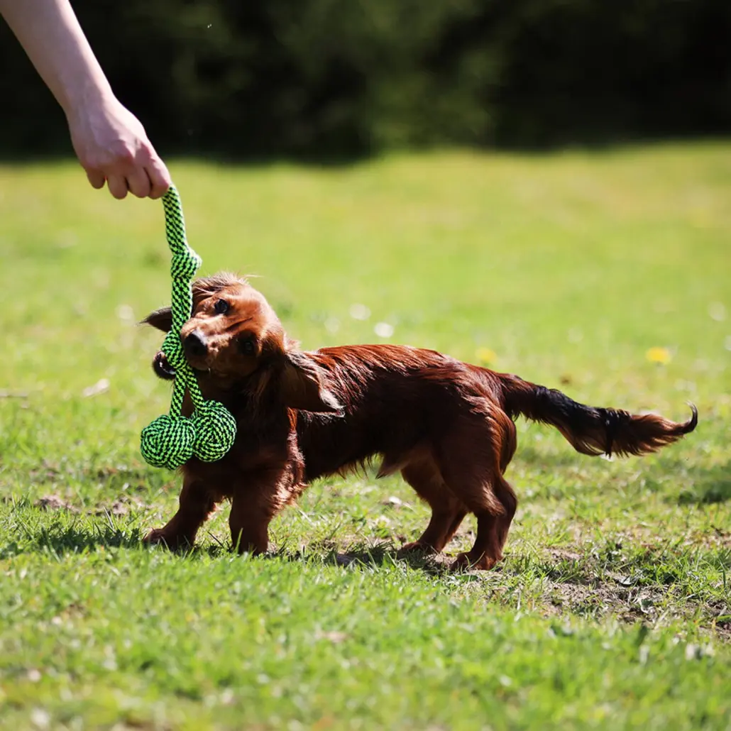 Hundleksak tillverkad av bomullsrep i from av en boll. Rep 37 cm.