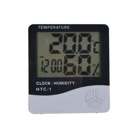 Batteridriven termometer och hygrometer med klocka. Visar temperatur, luftfuktighet och klockslag eller datum på en enkelt avläsbar digital display. Drivs med ett AAA batteri som medföljer.För övervakning av temperatur och luftfuktighet i slungrum mm. Levereras i kartong med mätenheten instruktionsblad på engelska samt ett AAA-batteri.
