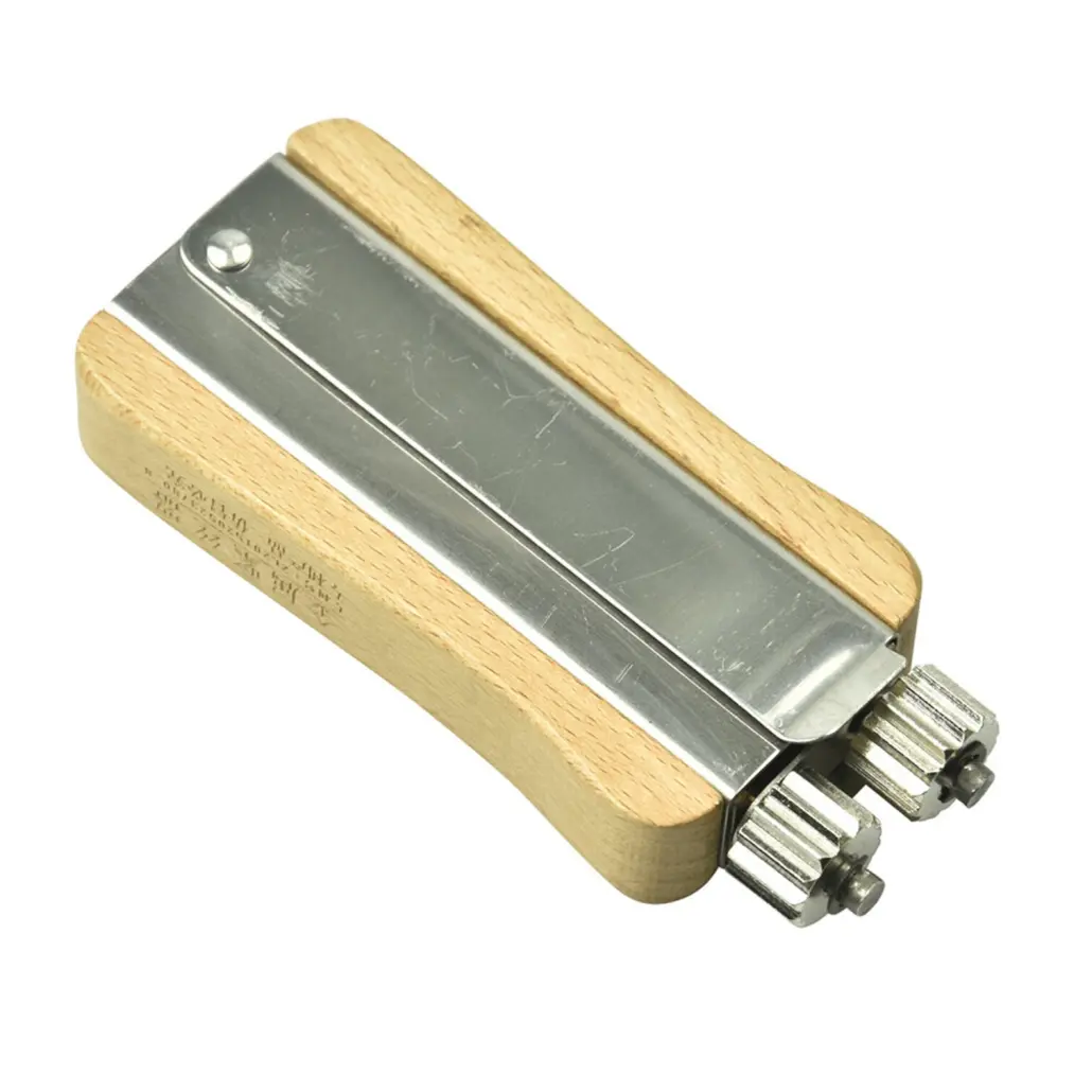 Trådspännare med ergonomiskt trähandtag och rostfria trissor som spänner trådar som blivit slappa genom att tråden veckas och därmed dras ihop. Försedd med ett greppvänligt, ergonomiskt och halkfritt handtag i trä.De massiva ståltrissorna veckar tråden effektivt, vilket gör att tråden spänns ihop. Rulla tråden genom att klämma fast tråden mellan trissorna och dra längs med tråden. Upprepa proceduren till tråden är välspänd.